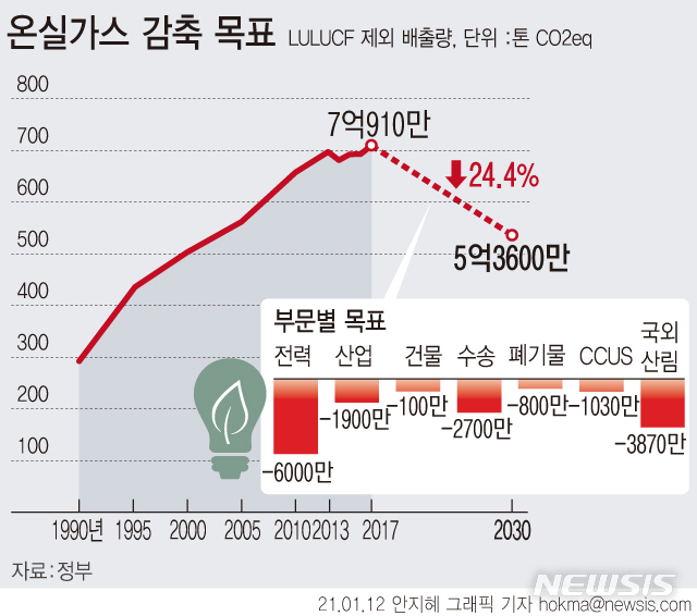 한국, 2030년까지 2017년보다 온실가스 24.4% 감축 목표