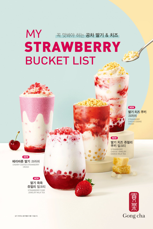 [서울=뉴시스] 최지윤 기자 = 공차코리아가 딸기 메뉴 4종을 선보였다. '꼭 맛봐야 하는 공차 딸기&치즈'를 주제로 다양한 토핑을 더했다.