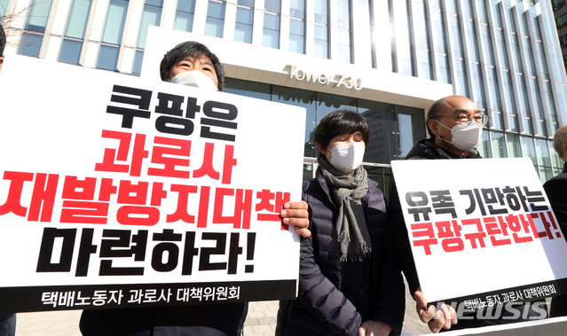 택배노동자 과로사 대책위는 쿠팡에서만 지난해 4명, 올해 2명 등 모두 6명이 과로사했다고 주장하고 있다. 이들은 "죽음의 기업인 공식적인 사과와 유가족에 대한 보상, 재발방지대책이 세워질 때까지 싸우겠다"고 했다.