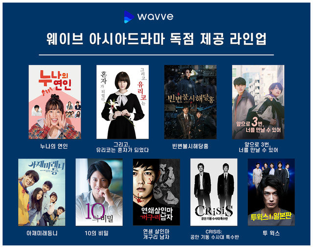 [서울=뉴시스] 이진영 기자 = 온라인 동영상 서비스 웨이브는 중국드라마 '빈변불시해당홍', '아재미래등니'과 일본드라마 '누나의 연인', '그리고, 유리코는 혼자가 되었다', '앞으로 3번, 너를 만날 수 있어' 등 총 9편을 순차적으로 독점 공개하고 있다고 15일 밝혔다.