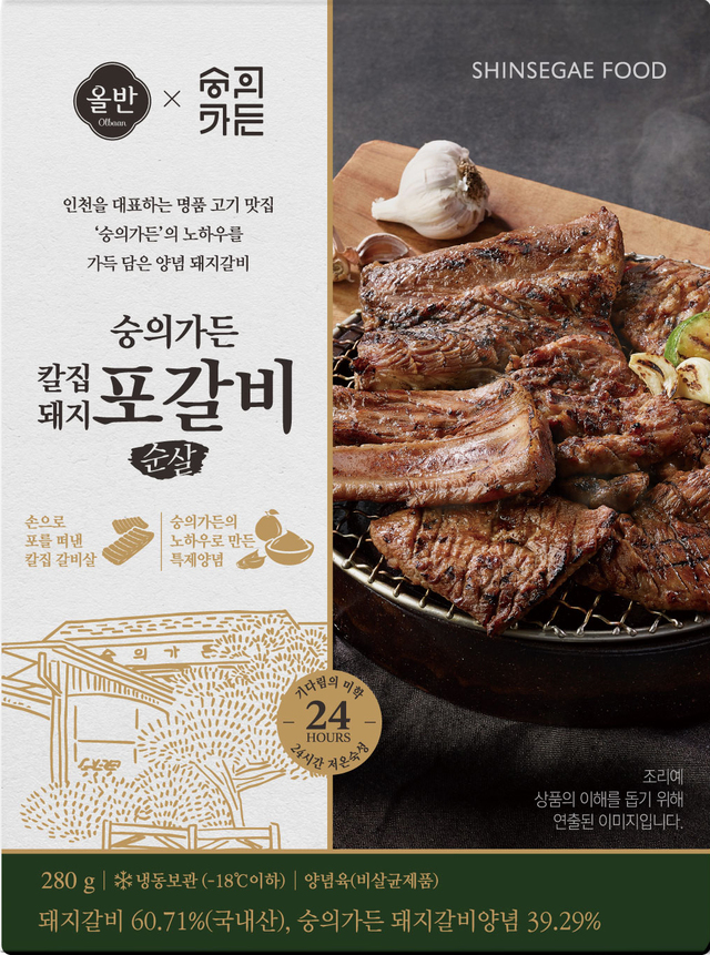 [서울=뉴시스] 최지윤 기자 = 신세계푸드가 '올반 숭의가든 칼집 돼지포갈비'를 내놨다. 숭의가든은 1991년 문을 연 인천 맛집이다. 특제양념에 재운 갈비와 소불고기 등으로 30년간 인기를 얻고 있다.