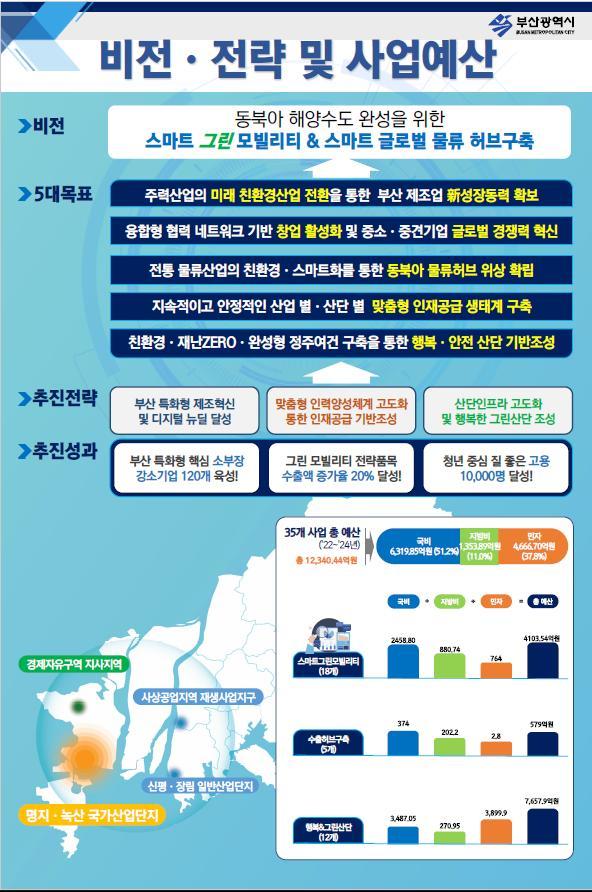 부산시는 이를 위해 ▲스마트·그린 모빌리티 소부장 선도산단 확립 ▲부산특화형 수출 허브 구축 ▲행복 & 그린산단 조성 등 3개의 중점과제를 추진한다.