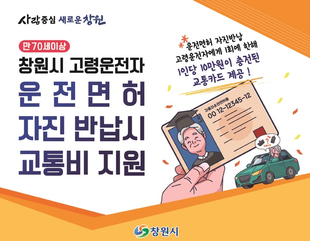 2019년 5월부터 창원시 고령운전자 교통사고 예방에 관한 조례에 따라 시행돼 지난해까지 3283여 명이 운전면허증을 반납하고 교통카드를 지급받았다.