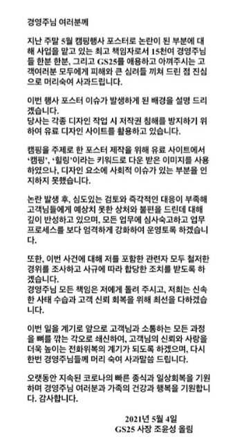 "경영점주와 고객 모두에게 사과한다"