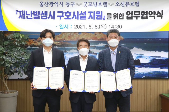 [울산=뉴시스]박수지 기자 = 울산시 동구는 6일 지역 숙박시설과 재난발생 시 구호시설 지원을 위한 업무협약을 체결했다.