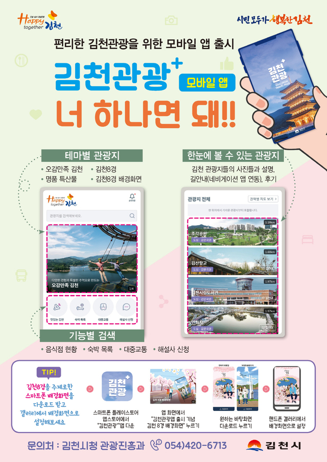 '김천관광+' 앱은 10일부터 구글 play스토어(안드로이드폰)와 애플 앱스토어(아이폰)를 통해 배포된다.
