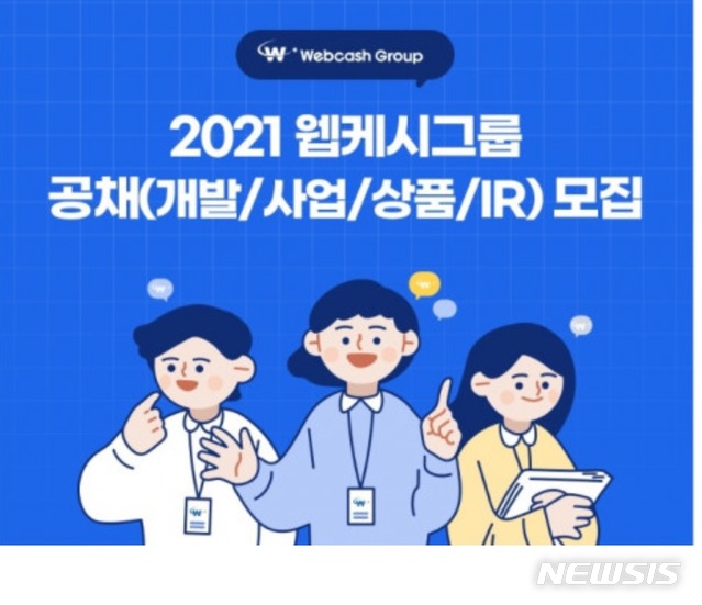 [서울=뉴시스] 이승주 기자 = 웹케시(053580)그룹이 개발과 사업 등 6개 분야에서 올해 신입사원 공개채용을 실시한다.