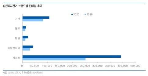 그러면서 "지난해 삼천리자전거의 연간 판매량은 전년 대비 48% 늘어난 58만대를 기록했다"며 "전체 판매량의 60% 이상을 차지하고 있는 레스포 판매량이 전년 대비 56% 증가했으며 전기자전거 94%, 첼로 27% 등 가격대별, 브랜드별 모두 고성장을 이뤘다"고 전했다.