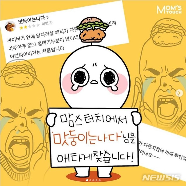 [서울=뉴시스] 김동현 기자 = 맘스터치가 자사 메뉴를 이용한 뒤 혹평을 남긴 고객을 공개적으로 찾고 있다.