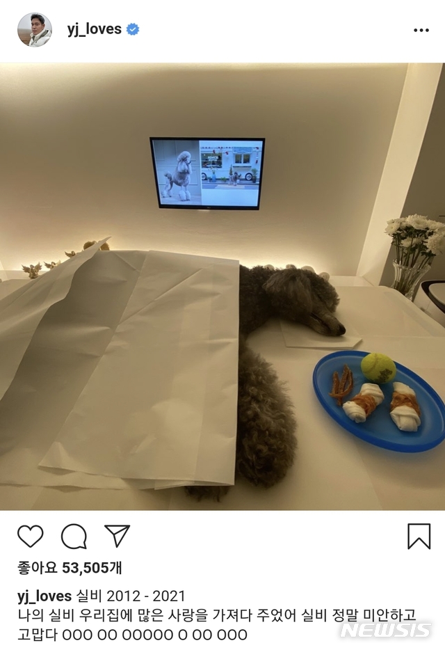 정 부회장은 지난 7일 인스타그램에 "실비 2012-2021. 나의 실비 우리 집에 많은 사랑을 가져다주었어. 실비 정말 미안하고 고맙다"는 문구와 함께 흰 천을 덮은 강아지 사진을 함께 올렸다.
