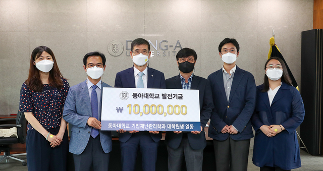 동아대는 기업재난관리학과 대학원생 26명이 학과 발전기금 1000만원을 기부했다고 18일 밝혔다.