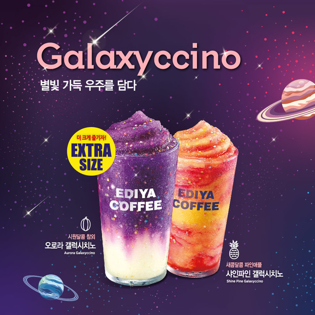 [서울=뉴시스] 최지윤 기자 = 이디야커피가 '오로라·샤인파인 갤럭시치노' 2종을 선보인다. 8일부터 9월30일까지 판매한다.