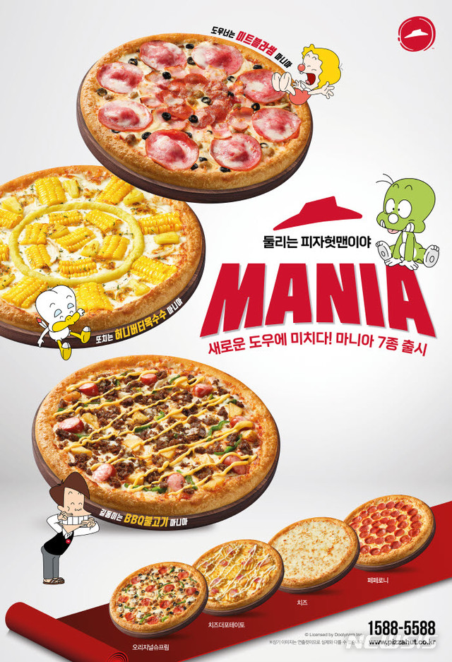 이번 마니아 피자는 ▲허니버터옥수수 ▲BBQ불고기 ▲미트블라썸 ▲오리지널슈프림 ▲치즈더포테이토 ▲페페로니 ▲치즈 피자 등 총 7종의 구성으로 선보인다. 미디엄 사이즈 기준 1만원 후반대의 가격으로 출시된다.