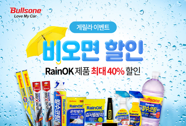 [서울=뉴시스] 최희정 기자 = 불스원은 자동차용품 온라인 쇼핑몰 ‘불스원몰’에서 우천시 레인OK 제품에 대해 최대 40% 할인 혜택을 제공하는 ‘레인OK 비오면 할인’ 게릴라 이벤트를 연다고 24일 밝혔다.