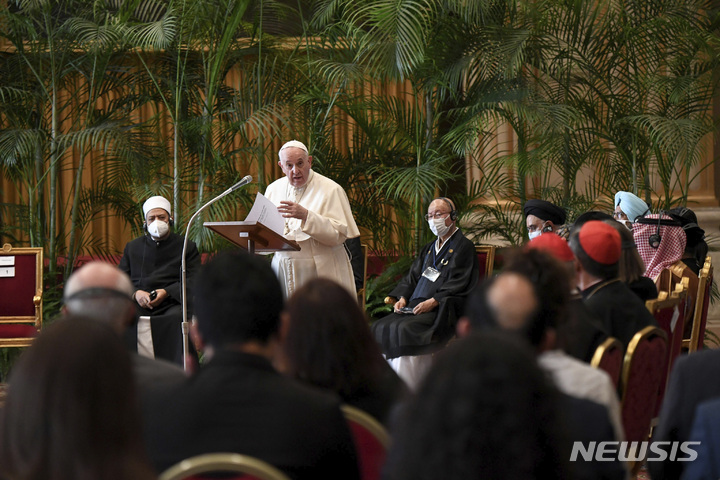 [런던=뉴시스]이지예 기자 = 프란치스코 교황이 세계 종교 지도자들을 모아 기후 위기 대응을 촉구하는 공동 호소문을 발표했다.