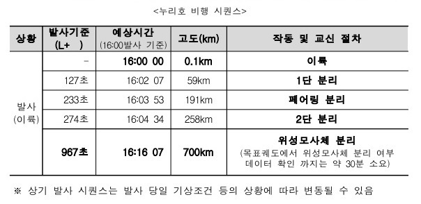 2010년 3월부터 11년여간 1조9572억원을 들여 개발한 결과가 16분여만에 판가름 나는 것이다. 이후 발사데이터 분석 과정을 거쳐 발사 약 30분 후에 최종 발사 성공 소식이 전달될 에정이다.