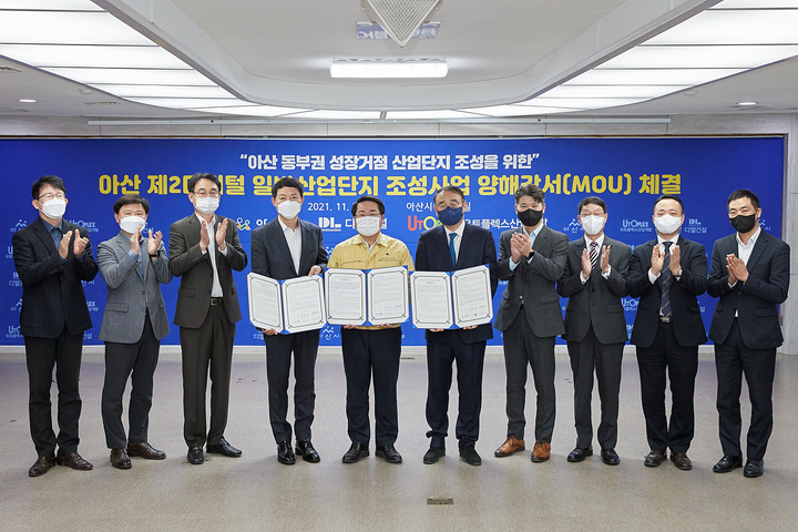 [아산=뉴시스] 이종익 기자 = 충남 아산시는 3일 DL건설㈜, ㈜유토플렉스산업개발과 '아산 제2디지털 일반산업단지' 조성사업을 위한 업무협약(MOU)을 체결했다.