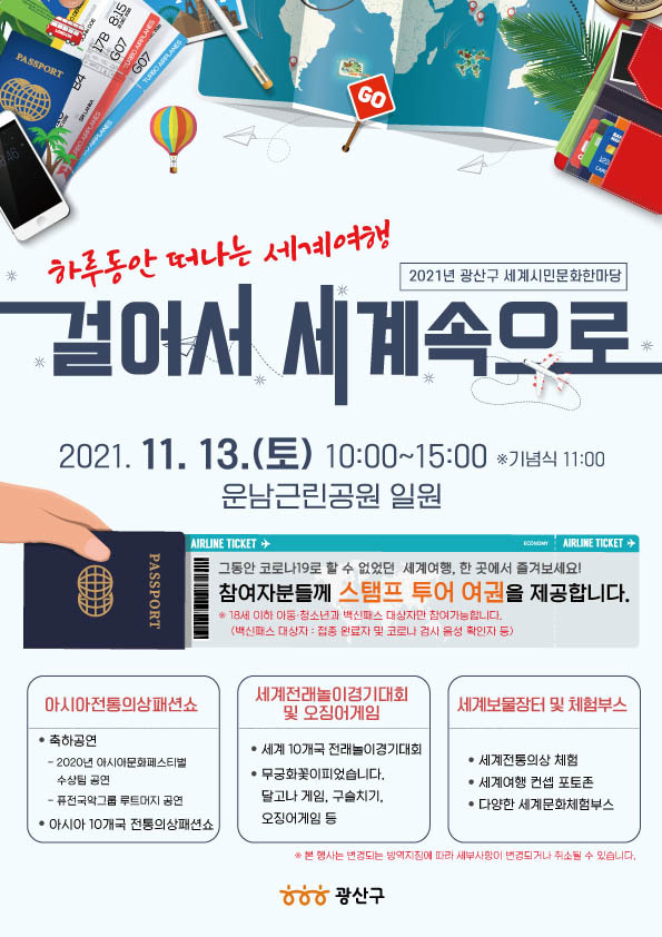 '하루 동안 떠나는 세계여행, 걸어서 세계 속으로'를 테마로 코로나19로 인해 세계 문화를 접하고 즐길 수 있는 기회가 적었던 시민에게 활력을 제공하고, 내·외국인이 함께 어울리며 화합하는 장이다.