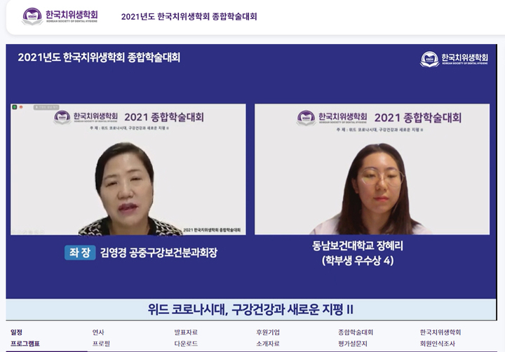우수상을 받은 연구는 이번 경진대회와 함께 열린 '2021년 한국치위생학회 종합학술대회 이 컨퍼런스'에서 연구결과를 구현 발표했다.