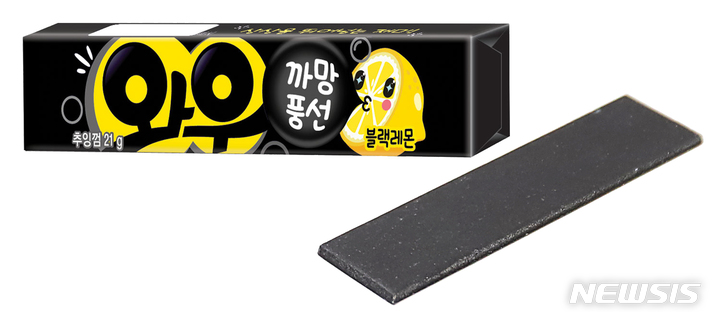 [서울=뉴시스] 김동현 기자 = 오리온이 까만색 풍선껌 '와우 블랙레몬'을 출시한다고 16일 밝혔다. 와우 블랙레몬은 레몬 과즙 농축액을 넣은 껌 베이스에 천연 색소로 구현한 검은색을 입힌 제품이다.