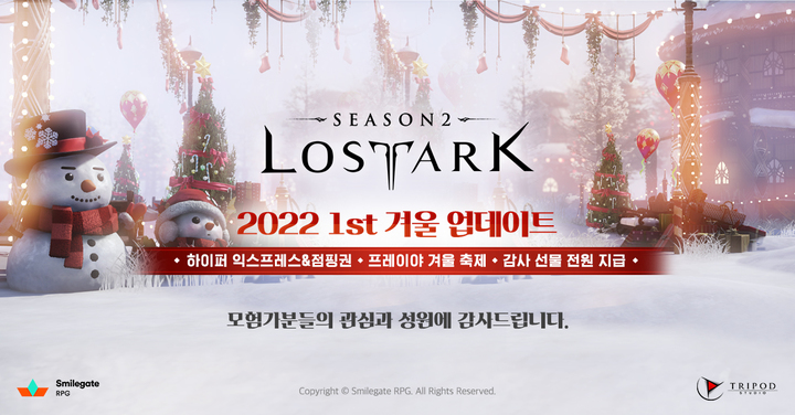 스마일게이트 RPG는 로스트아크가 겨울 대규모 이벤트를 시작한 이후 첫 주말인 지난 26일 전주 대비 신규 모험가 수 545%, 복귀 모험가 수 499% 증가했다고 29일 밝혔다.