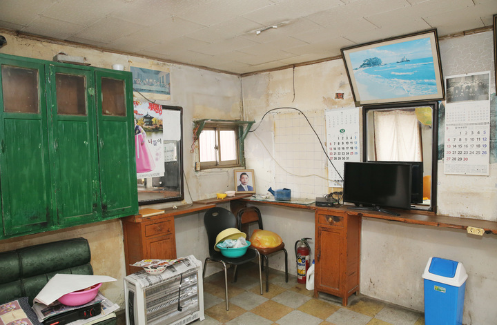 이발소 한켠에는 고(故) 박정희 대통령 사진과 손님들의 머리를 감아주던 물조리개도 자리를 지키고 있다.