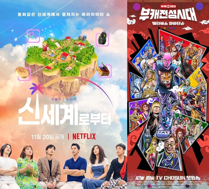 [서울=뉴시스] 최지윤 기자 = 국내 예능물 제작비 100억원 시대가 열렸다. 넷플릭스, 쿠팡플레이 등 국내외 온라인동영상서비스(OTT)의 공격적인 투자로 예능물 제작 규모가 커지는 추세다. OTT 플랫폼 특성상 표현 범위가 넓어졌을 뿐 아니라, 탄탄한 제작 지원으로 콘텐츠 완성도도 높아졌다. 3차원 가상세계인 메타버스를 활용한 예능물 등으로 드라마·영화 못지 않은 볼거리를 제공, 경쟁력을 강화하고 있다. OTT를 타고 K-드라마에 이어 K-예능도 세계로 뻗어갈까.