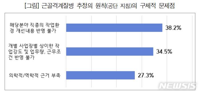 경총은 고시 개정안의 업종·직종 단위 인정기준은 역학적 근거와 일관성이 부족하고, 사업장 작업환경 개선 효과 및 근무환경 차이 등을 전혀 반영할 수 없다며 문제점을 지적했다.