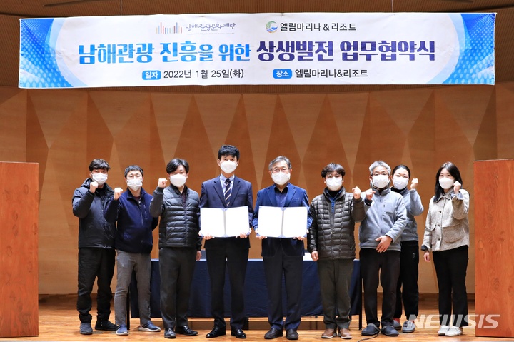 [남해=뉴시스] 차용현 기자 = 경남 남해관광문화재단과 남해 관광문화 레저기업인 엘림마리나 앤 리조트가 남해 관광활성화를 위해 손을 잡았다.