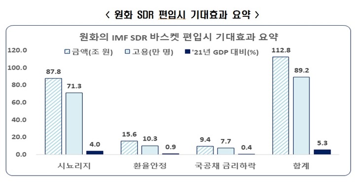 추광호 경제본부장은 "국제통화기금(IMF)이 제시한 SDR 통화바스켓 편입조건과 한국의 경제적 위상 등을 고려했을 때 원화의 자격은 충분하다"고 밝혔다.