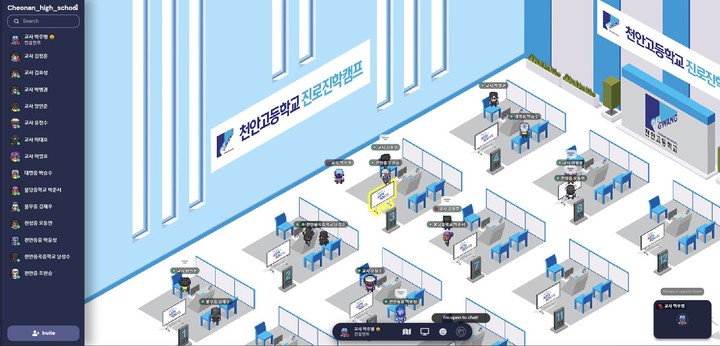 [천안=뉴시스] 이종익 기자 = 충남 천안고등학교(교장 손문종)가 코로나19의 장기화에 대한 선제적 대응 등을 위해 메타버스 플랫폼 게더타운(Gather town)으로 학교맵을 실사와 같이 구축, 운영으로 호응을 얻고 있다.