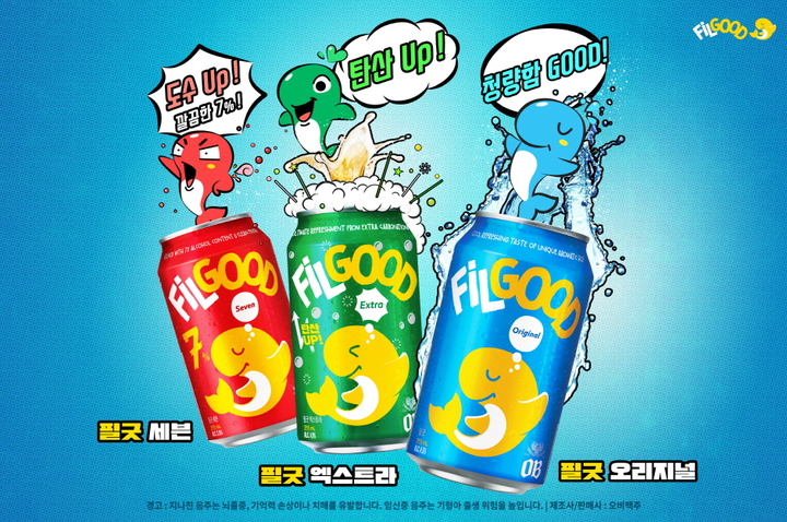 풍부한 아로마향과 부드러운 청량감으로 하루를 마무리하기에 좋은 필굿 오리지널은 부드러운 카리스마의 파란 고래 '필구', 높은 탄산감과 부드러운 목넘김으로 일상에 활력을 더해주는 필굿 엑스트라는 남다른 텐션을 지닌 초록 고래 '텐구', 7%의 높은 도수와 깔끔한 끝맛으로 스트레스를 날려버리는 필굿 세븐은 자신감 넘치는 빨간 고래 '칠구'로 표현했다.