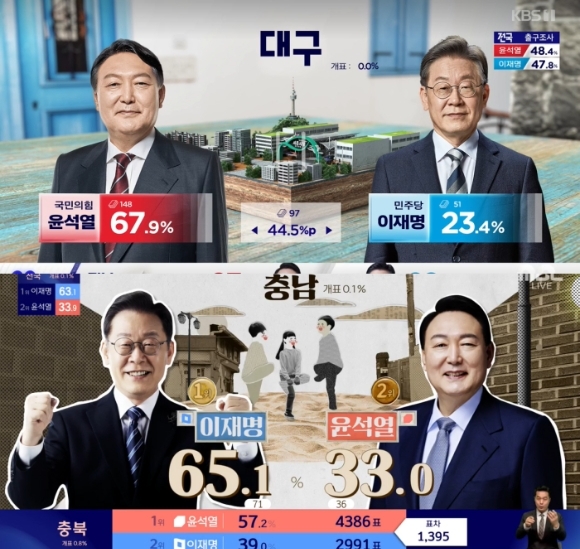 제20대 대선에서 국민의힘 윤석열 후보가 당선됐다. 윤 당선인은 득표율 48.6%, 더불어민주당 이재명 후보는 47.8%를 보였다. 역대 최소 표 차이다.