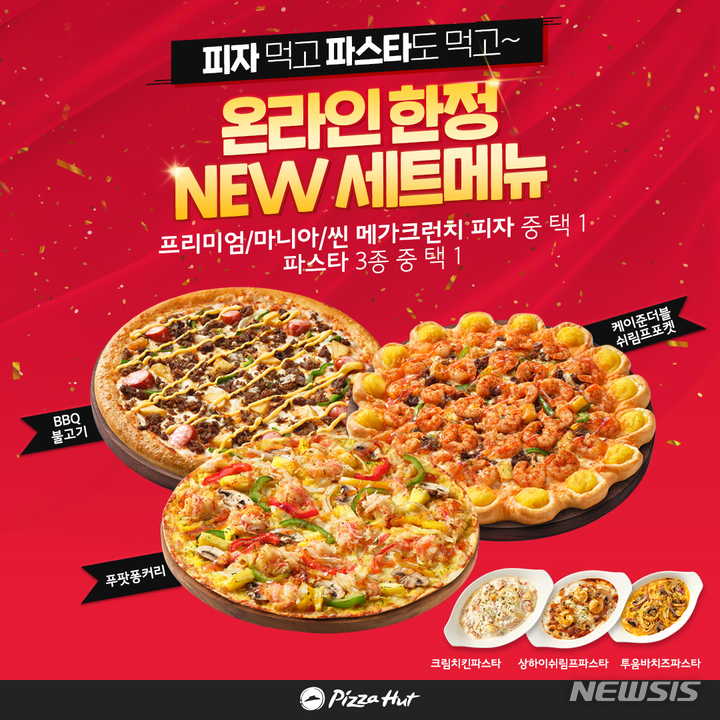 [서울=뉴시스] 김동현 기자 = 한국피자헛은 세트 메뉴 3종을 출시했다고 11일 밝혔다. 이번 세트 메뉴 3종은 각각 ▲패밀리 ▲커플 ▲(씬)메가크런치로 출시됐다. 피자와 파스타를 함께 즐길 수 있는 것이 특징이다.
