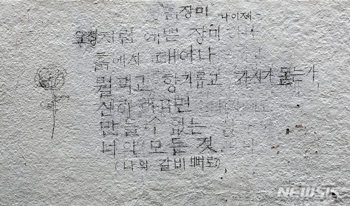 군데 군데 '시'로 보이는 글귀가 보였다. 한걸음 한걸음 내딛으면서 글귀를 하나 하나 읽어 봤다.