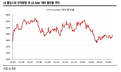 최관순 SK증권 연구원은 "주요 자회사 주가 하락과 시장의 지주회사에 대한 할인율 확대에 따라 적용 NAV(순자산가치) 대비 할인율을 기존 50%에서 60%로 높여잡아 LG의 목표주가를 하향한다"며 "할인율의 보수적 적용에도 현 주가 대비 상승여력은 35% 이상인 저평가 상태"라고 평가했다.