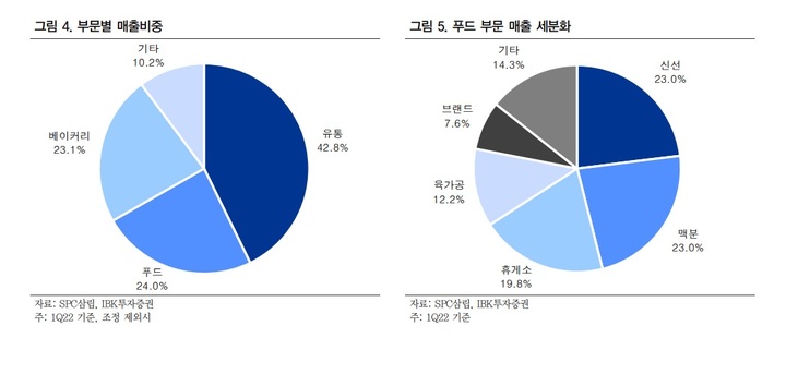 김태현 IBK투자증권 연구원은 "1분기 연결 매출액과 영업이익은 각각 7248억원, 136억원으로 전년 동기대비 11.1%, 30.1% 증가했다"며 "원재료 가격 상승 부담에도 시장 기대치에 부합하는 양호한 실적을 시현했다. 리오프닝(경기재개)이 확대되며 식자재 유통 매출이 회복했고 2월말에 출시한 포켓몬빵 판매 호조로 베이커리 매출도 개선됐다"고 말했다.