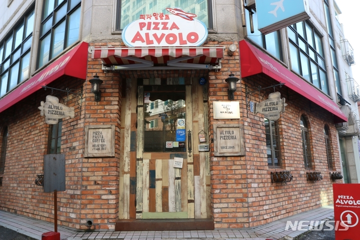 [서울=뉴시스] 김동현 기자 = 길을 걷다 보면 동네 곳곳에서 하늘색 비행기 간판을 만날 수 있다. 이 브랜드의 이름은 '피자알볼로'다. 피자알볼로는 '피자'와 이태리어로 '비상하다'라는 뜻을 가진 '알볼로(Alvolo)'를 더했다. 맛있는 피자로 비상한다는 의미를 담고 있다.