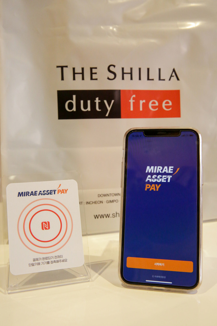 미래에셋페이는 근거리 무선통신(NFC) 기술을 활용하는 아이폰에 특화된 간편결제 서비스다. 미래에셋페이 앱을 켜고 면세점 내에 비치돼 있는 태그 단말기에 아이폰 상단을 가까이 대면 1~2초만에 결제가 완료된다.