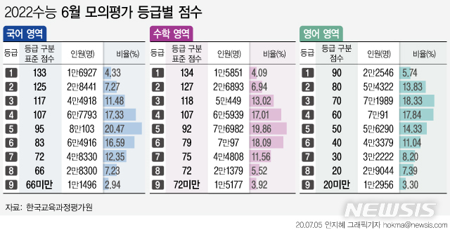 수능 출제기관인 한국교육과정평가원(평가원)은 6월 모의평가 채점 결과를 5일 이같이 공개했다.