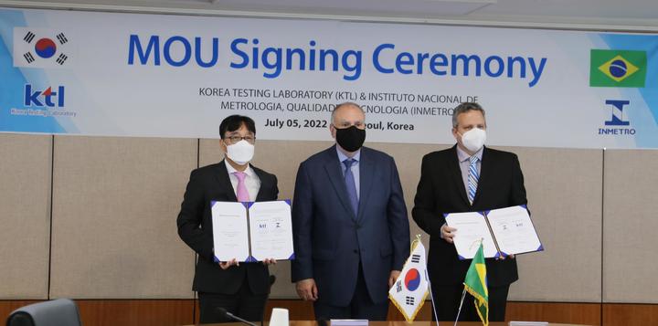 [진주=뉴시스] 정경규 기자 = 한국산업기술시험원(KTL)은 KTL 서울분원에서 브라질 국립계량품질기술원(INMETRO)과 ‘전기, 전자, 저장 시스템 및 에너지 관리 분야의 시험인증 협력’을 위한 업무협약을 체결했다고 5일 밝혔다.
