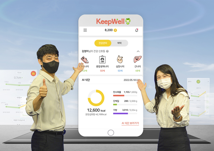‘킵웰’은 SK㈜ C&C가 운영 중인 클라우드 온 클라우드(Cloud on Cloud)형 인공지능(AI)∙데이터 플랫폼을 활용한 지능형 건강관리 서비스다. AI∙빅데이터∙블록체인 기술을 활용해 사용자 건강 정보를 분석하고 건강기능식품과 운동 콘텐츠 추천은 물론 피부 건강과 마음 건강 관리까지 한 번에 제공한다. 구글플레이스토어, 앱스토어, 원스토어에서 내려받은 뒤 카카오 계정으로 간편하게 가입해 사용할 수 있다.