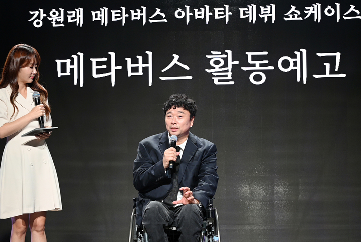 강원래는 18일 서울 청담동 일지아트홀에서 열린 메타버스 아바타 데뷔 쇼케이스에서 "다들 2009년 개봉한 영화 '아바타'를 기억할 것"이라며 "휠체어를 탄 주인공이 아바타로 변신해 달리며 흙을 밟는다. 그 장면을 보고 아내와 눈물을 많이 흘렸다. '내가 과연 나중에 저렇게 달릴 수 있을까?' '어떤 느낌일까?' '이런 감정을 다시 한번 느낄 수 있으면 좋겠다'고 생각했다. 아바타로 탄생해 이런 기분을 느끼게 돼 설렌다"고 털어놨다.