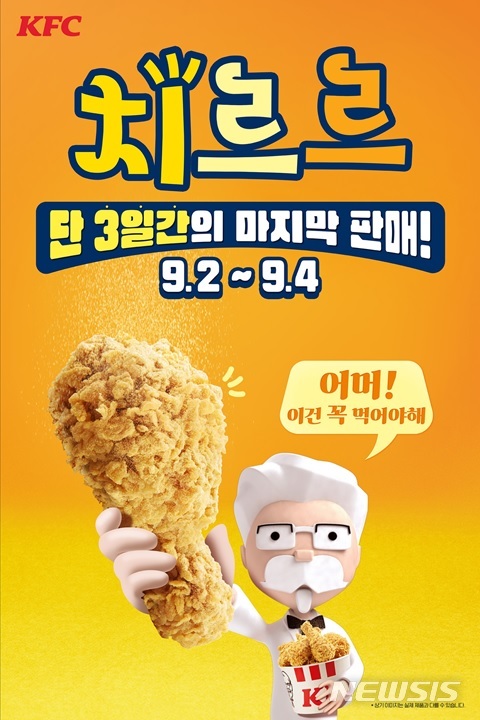 KFC 관계자는 "중독성 강한 치즈 시즈닝의 맛과 바삭하면서도 속은 부드러운 식감이 특징인 치르르치킨에 대한 고객들의 호응에 힘입어 한번 더 선보이게 됐다"며 "짧은 기간이지만 KFC 치르르치킨의 맛을 즐겨주시길 바란다"고 말했다.