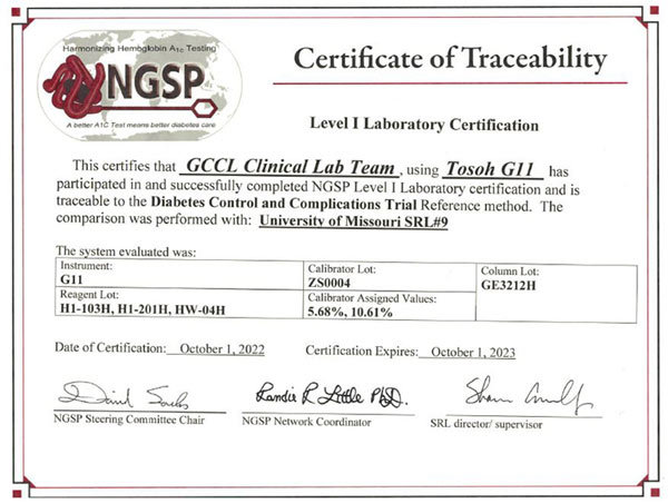 지씨씨엘은 HPLC 분석법으로 진행한 40개의 샘플 분석 중 40개 모두 NGSP의 기준을 통과해 NGSP Level 1을 획득했다.
