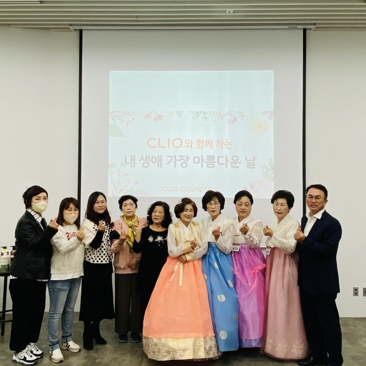 클리오는 지난 24일 클리오 본사에서 성동구 관내 65세 이상 어르신들을 대상으로 메이크오버(단장) 프로그램 '내 생애 가장 아름다운 날'을 진행했다고 28일 밝혔다.