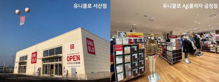 [서울=뉴시스]이지영 기자 = 유니클로가 서산점과 AK플라자 금정점을 오픈한다고 11일 밝혔다.