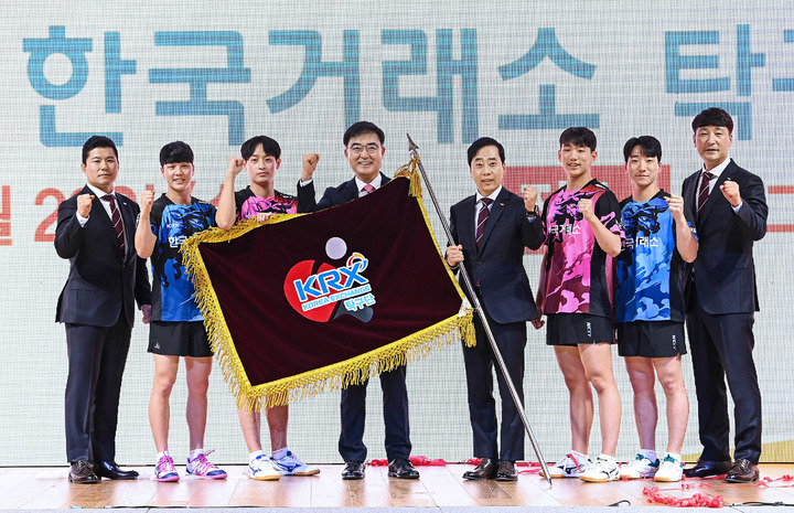 [서울=뉴시스] 박은비 기자 = 한국거래소가 23일 부산을 연고로 하는 탁구단을 창단했다. 한국프로탁구리그의 8번째 남자 구단이다.