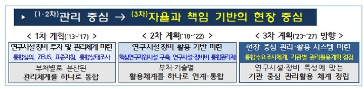 '제3차 국가연구시설장비 고도화계획('23-'27)(안)'에 따른 대형연구시설·장비 관리 체계. (사진=과학기술정보통신부 제공) *재판매 및 DB 금지