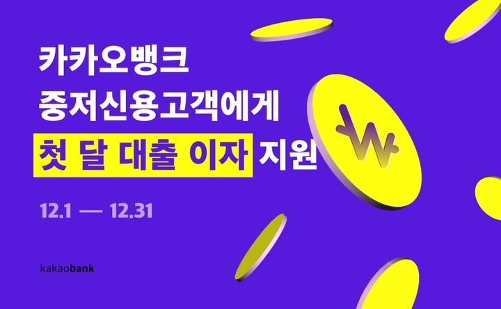 [서울=뉴시스] 이정필 기자 = 카카오뱅크는 12월 한 달간 중저신용고객을 대상으로 첫 달 이자 지원 이벤트를 진행한다고 30일 밝혔다.